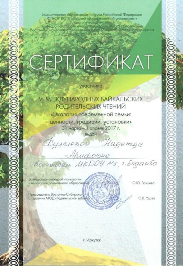 VI Международные Байкальские родительские чтения "Экология современной семьи: ценности, традиции, установки" |