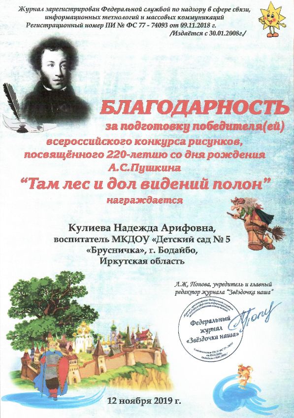 Всероссийский уровень Конкурс рисунков "Там лес и дол видений полон" |