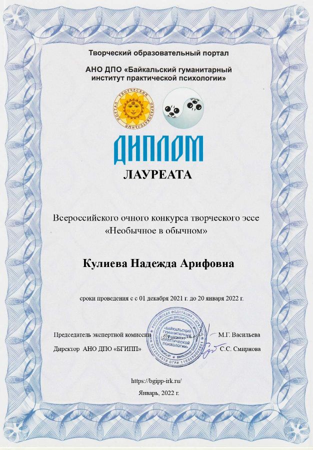 АНО ДПО "Байкальский гуманитарный институт практической психологии" | Лауреат | |