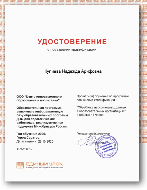| 2021 | ООО "Центр инновационного образования и воспитания" | "Обработка персональных данных в ОО" | 36 | |