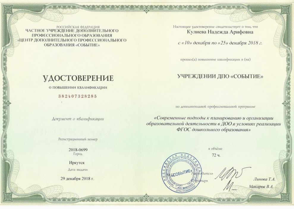 (ДПП ПК) «Современныеподходы к организациии планированиюобразовательнойдеятельности в условияхреализации ФГОС ДО» |