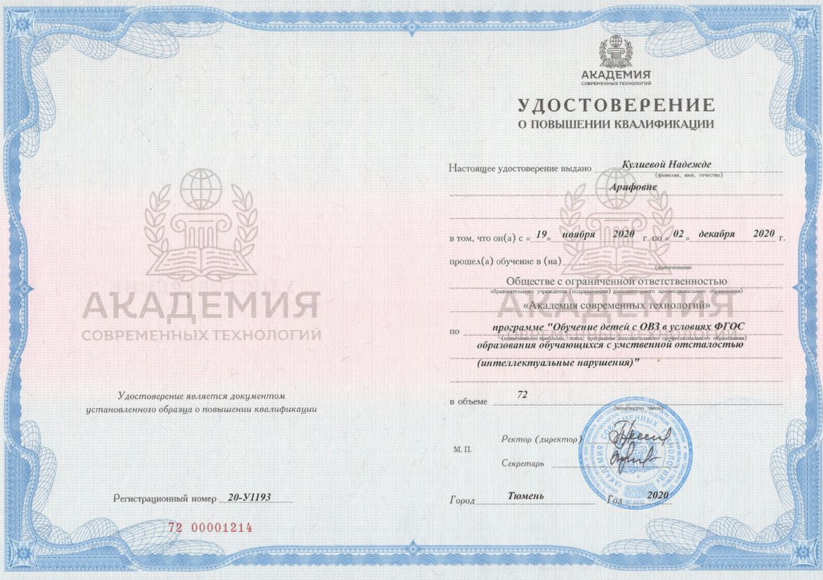 "Обучение детей с ОВЗ в условиях ФГОС образования обучающихся с умственной отсталостью (интеллектуальные нарушения)" | 72 | |