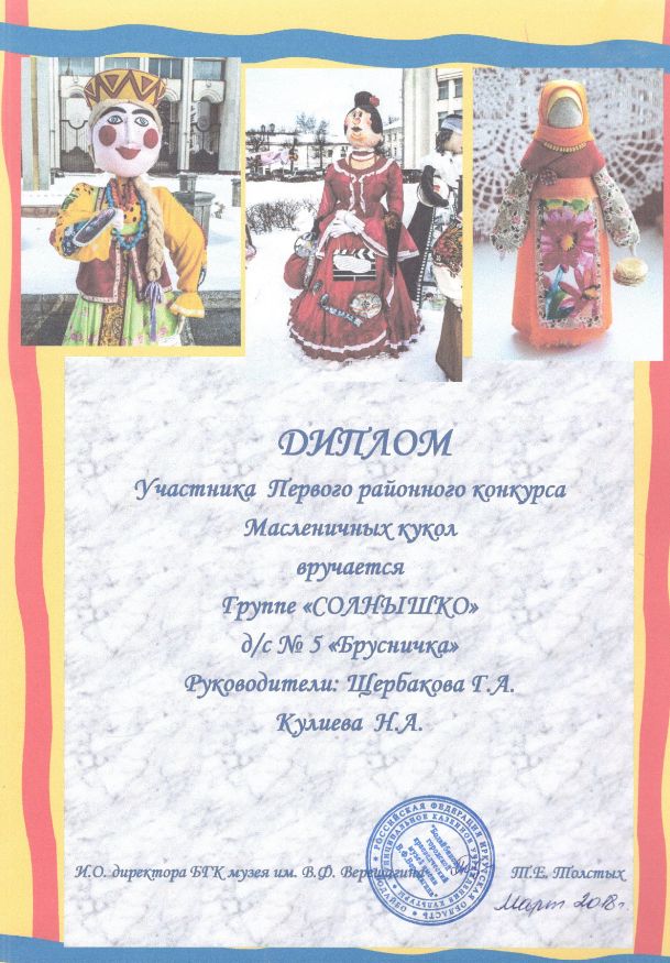 Районный уровень Конкурс масленичных кукол |